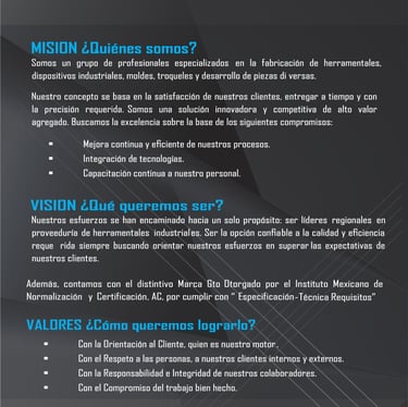 En Mainprecor, nos comprometemos a ofrecer soluciones innovadoras y de alta calidad en la fabricación de herramentales y dispositivos industriales.